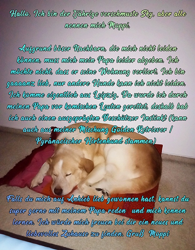 Wenn Ihr Tier über unsere Homepage ein neues zu Hause finden soll, dann senden Sie uns bitte zu den Fotos und der Tierbeschreibung per Mail, immer Ihre kompletten Kontaktdaten (Adresse, Telefonnummer, E-Mail) und dass wir den Text und die Fotos auf unserer Homepage oder auf FB veröffentlichen dürfen! Ohne diese Angeben können wir Sie nicht bei der Vermittlung unterstützen!